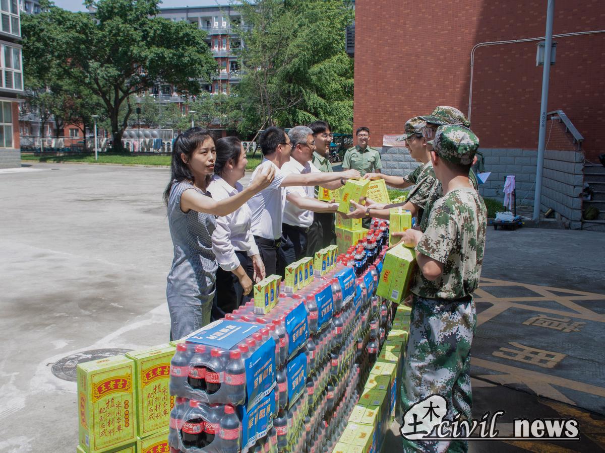 联合中建八局发展建设公司西南分公司在学生园区举行军训慰问活动。中建八局发展建设公司西南分公司党总支副书记、总经理郭兴鹏书记,肉漫